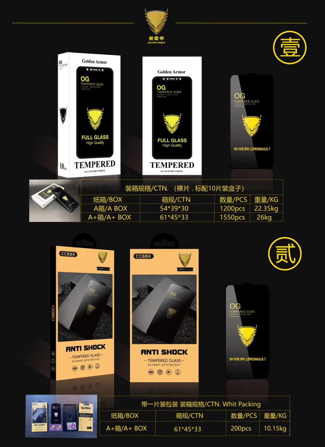 黄金甲AG抗震膜|Golden Armor AG Anti-Shock Glass Wed, 04 Feb 2026 09:05:26 +0800 玻璃/Glass0.3mm高铝+气囊抗摔边,永不碎边,AG精细磨砂工艺,不易留指纹0.3mm high aluminum+Airbag edge,never broken,NO FingerprintAB胶/AB glue进口高粘280AB胶,拒绝白边280AB Glue,No white border钢化时间/Tempered钢化3小时,210度对折,64G落球1.2M测试3次不破Tempered 3H,Folding:210°,Drop ball test涂油/Coating高端指纹油双头等离子喷涂,/Double-head Plasma底板/Baseboard0.55mm一比一底板/0.55mm 1:1 baseboard